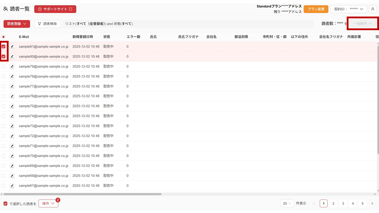 ※チェックを付けた対象への操作は画面下部の「☑で選択した読者を操作」から操作になります。