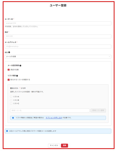 ブラストメールにログインできるユーザーを追加登録できます。